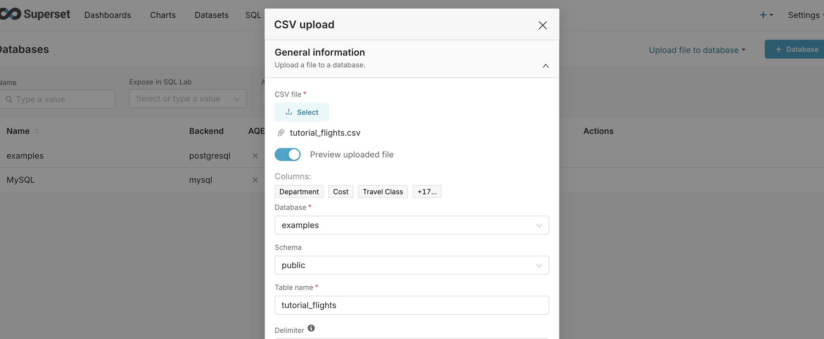 In this tutorial, we will introduce key concepts in Apache Superset through the exploration of a real dataset which contains the flights made by employees of a UK-based organization in 2011.